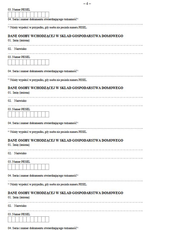 Tak wygląda wzór Osoba która będzie chciała otrzymać dodatek węglowy będzie musiała podać podstawowe dane takie jak imię nazwisko obywatelstwo i numer PESEL a jeśli go nie ma numer dokumentu stwierdzającego tożsamość. 22 lipca 2022 1108. Od tego dnia będzie można składać wnioski o dodatek.
